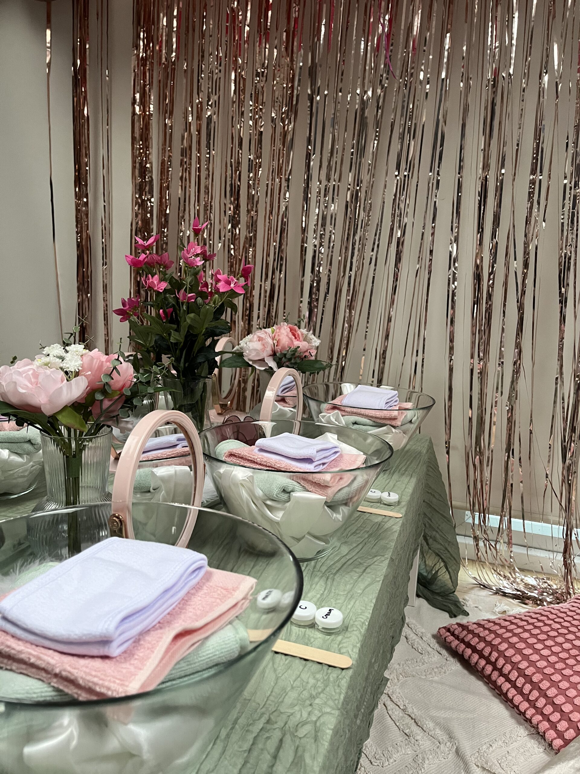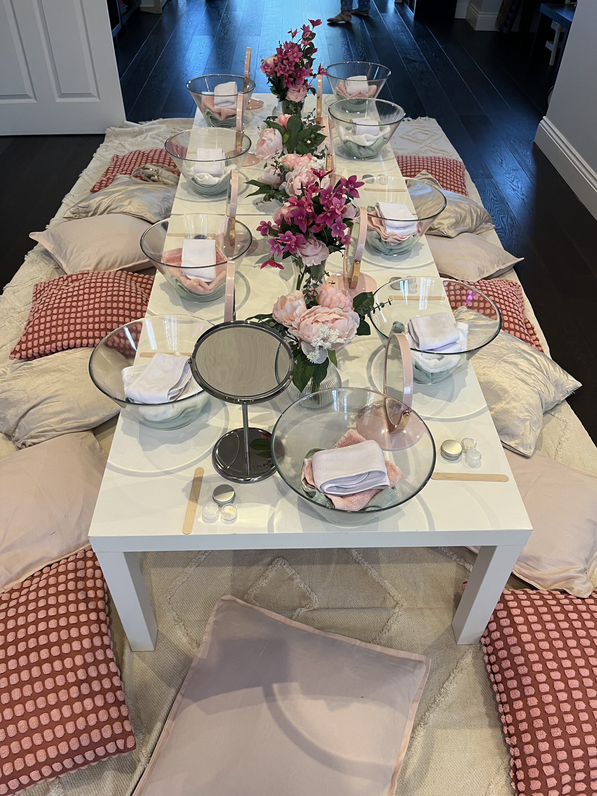 Additionally you can have a blast by renting our spa table, rug and cushion setup. Eesha Events will provide a low white table, cozy cushions that match your theme, and a stylish rug. Plus, we’ll deck out the table with beautiful flowers and decorations to create the perfect party vibe.